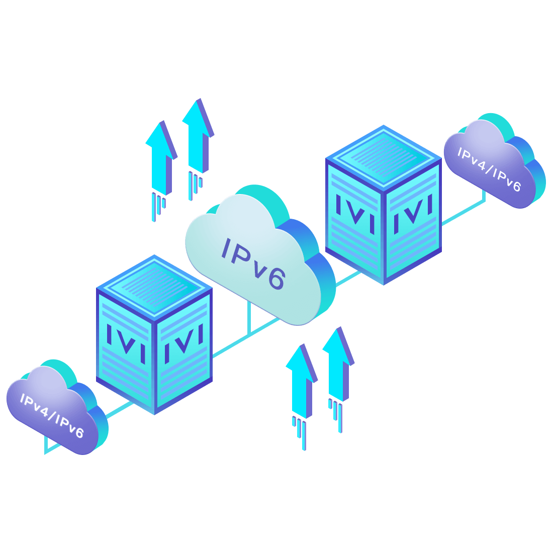 對正在進行IPv6整體升級規(guī)劃的運營商,應用IPv6升級方案2.5,通過IVI無狀態(tài)翻譯技術(shù)和純IPv6接入網(wǎng)絡,為雙??蛻舳撕碗p棧服務器提供連通服務。